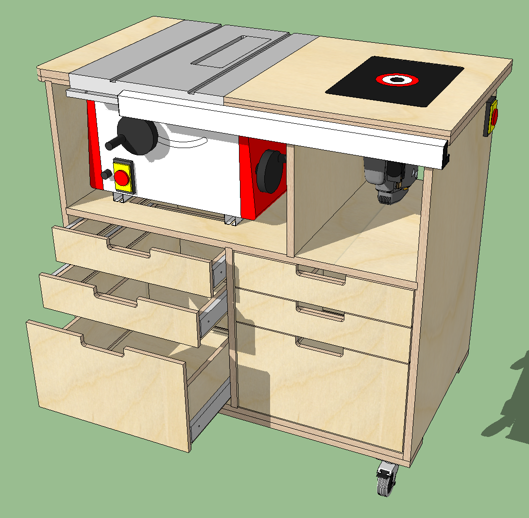 - Sketchup model of the table saw bench (select tab for cross-cut sled)