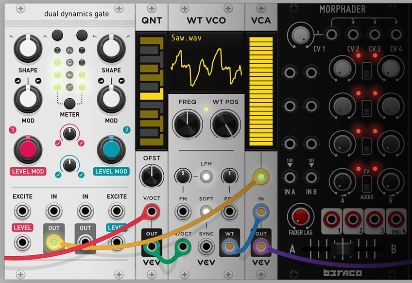 VCV Rack is an amazing free open-source virtual modular synthesiser run entirely within software. It utilises a number of EuroRack style modules to build a rack of “equipment” comprising VCOs, LFOs, mixers, and other standard synthesiser modules. Many of these modules are based on their “real-life” hardware modules, but create sounds entirely in software. There are also a multitude of additional paid-for modules available.